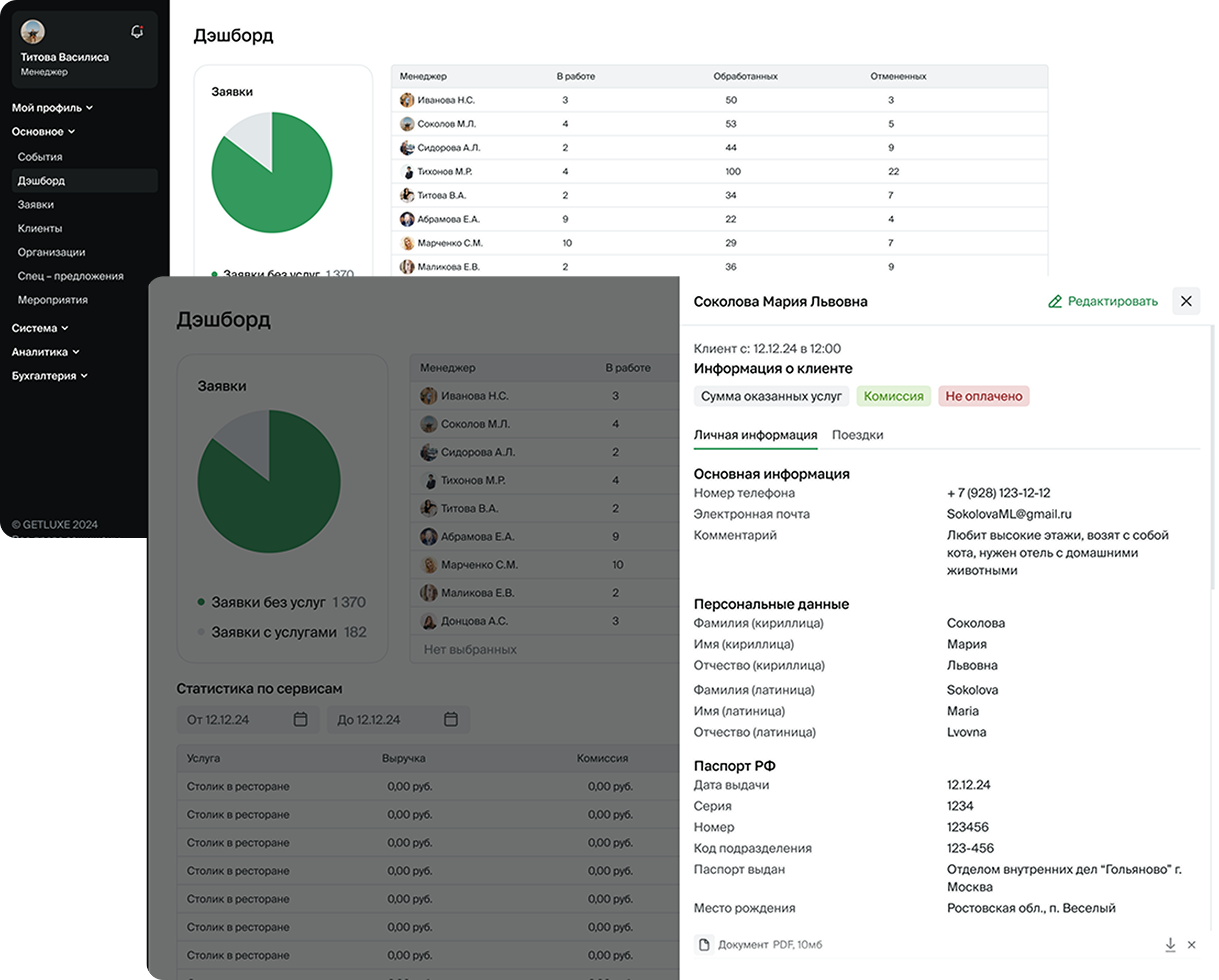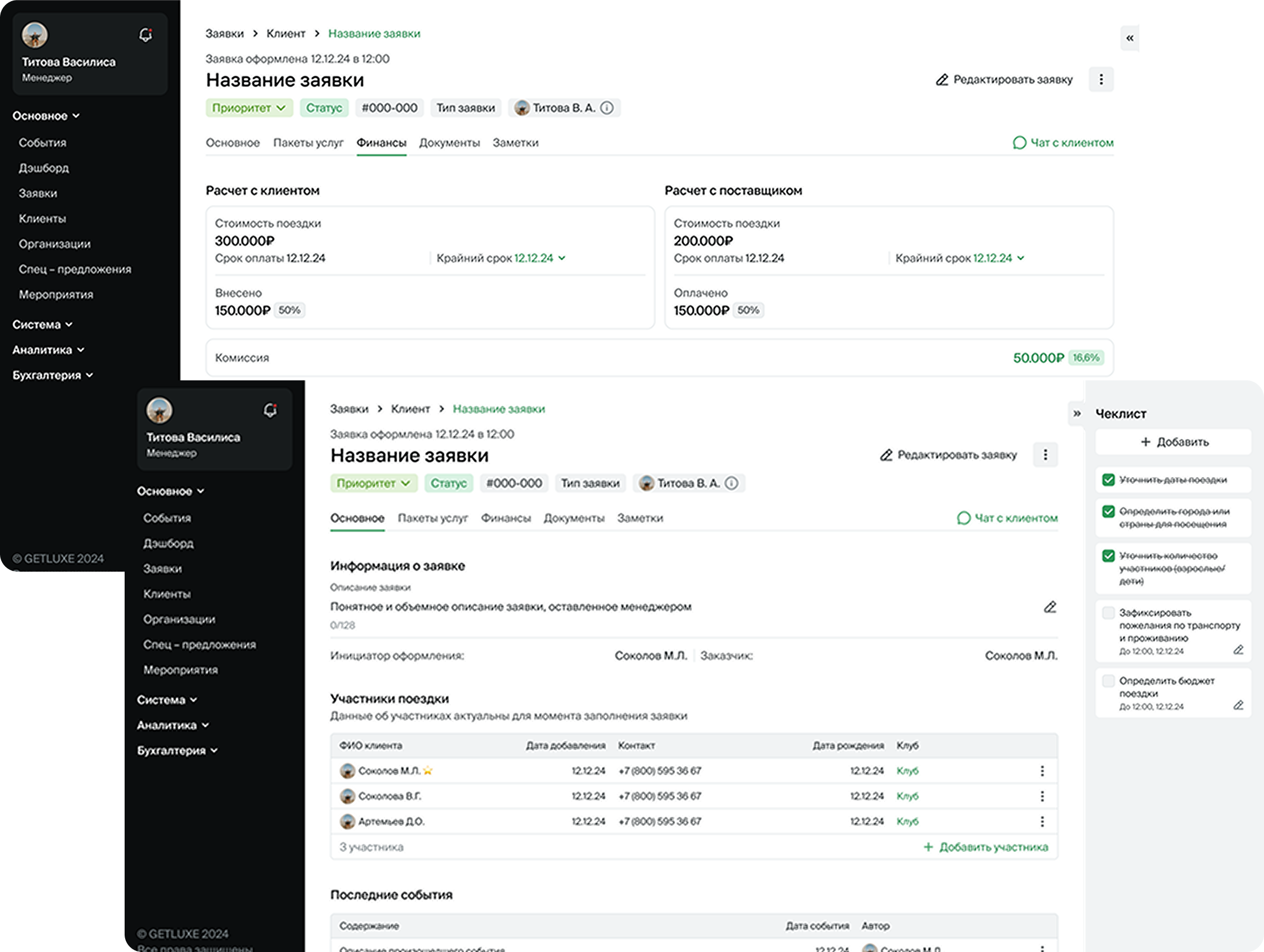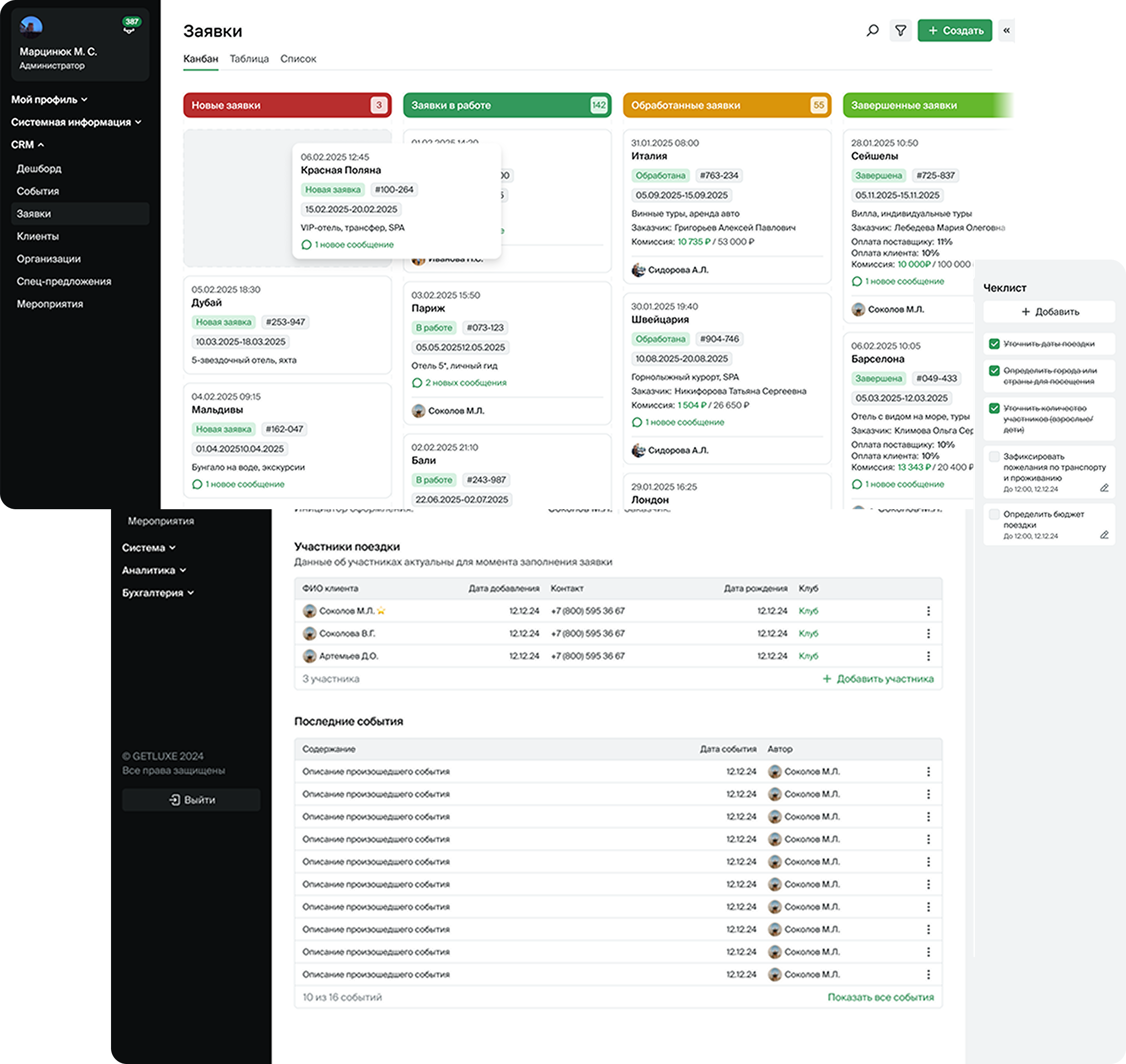 Все этапы работы с клиентом структурированы в виде чек-листов, что помогает не забыть о важных деталях. Автоматизация процессов снижает шанс на ошибку